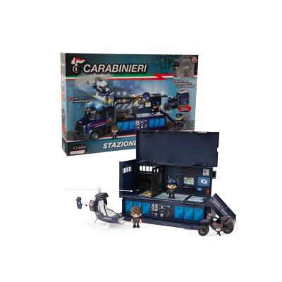Il camion apribile e attrezzato è la nuova stazione mobile dei Carabinieri. Il veicolo si apre trasformandosi in una stazione operativa. All’interno anche una moto e un elicottero per inseguimenti spericolati. Due personaggi 7 cm e accessori da missione inclusi