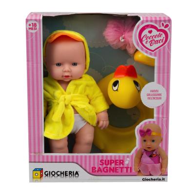 Bambola con abbigliamento da bagnetto, salvagente colorato e 2 accessori. Altezza bambola 30 cm.