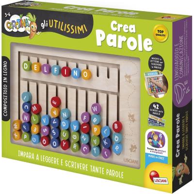 Un compositoio in legno per imparare a scrivere tante parole in modo divertente e originale. Il bambino deve far scorrere le lettere colorate al posto giusto per formare le paroline presenti sulle schede. Questo gioco educativo permette di sviluppare il lessico, la logica e la manualità.
