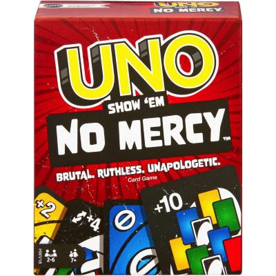 UNO Show 'em No Mercy aggiunge 56 nuove carte, regole speciali e Carte Azione tostissime dando vita all'edizione di UNO più brutale di sempre!