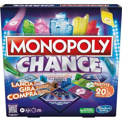 GIOCA PER CIRCA 20 MINUTI: dimentica ciò che sai di Monopoly! Il gioco Monopoly Chance è una versione ad alto rischio in cui occorre capovolgere delle carte e dove ogni partita dura circa 20 minuti