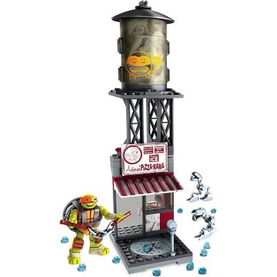 Playset ispirato al cartone animato delle Tartarughe Ninja che riproduce la pizzeria di NYC. Il playset è componibile ed include tubi connettibili, Michelangelo ed elementi della pizzeria combinabili e intercambiabili.