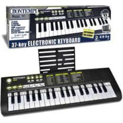 Tastiera elettronica a 37 tasti • 10 canzoni preregistrate • 8 suoni • 16 Ritmi • Polifonia 8 note • OKON (Funzione di apprendimento) • Funzione di registrazione e riascolto • Metronomo • Effetti: Sustain, Vibrato • Regolazione del volume • Regolazione del tempo • Funzione Transposer • Alimentazione: con cavetto USB Tipo-C (fornito) da collegare ad una power bank, PC, caricatore telefonico ecc. (non forniti) o con 4 batterie da 1,5V tipo R6/AA (non fornite) • Presa USB Tipo-C per cavetto di alimentazione (fornito) • Presa cuffia (non fornita) • Striscia pentagramma • Dim.: 500x180x40 mm