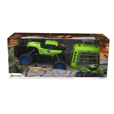 Fuoristrada radiocomandato con rimorchio a gabbia porta dinosauri. 1 dinosauro incluso nel set.